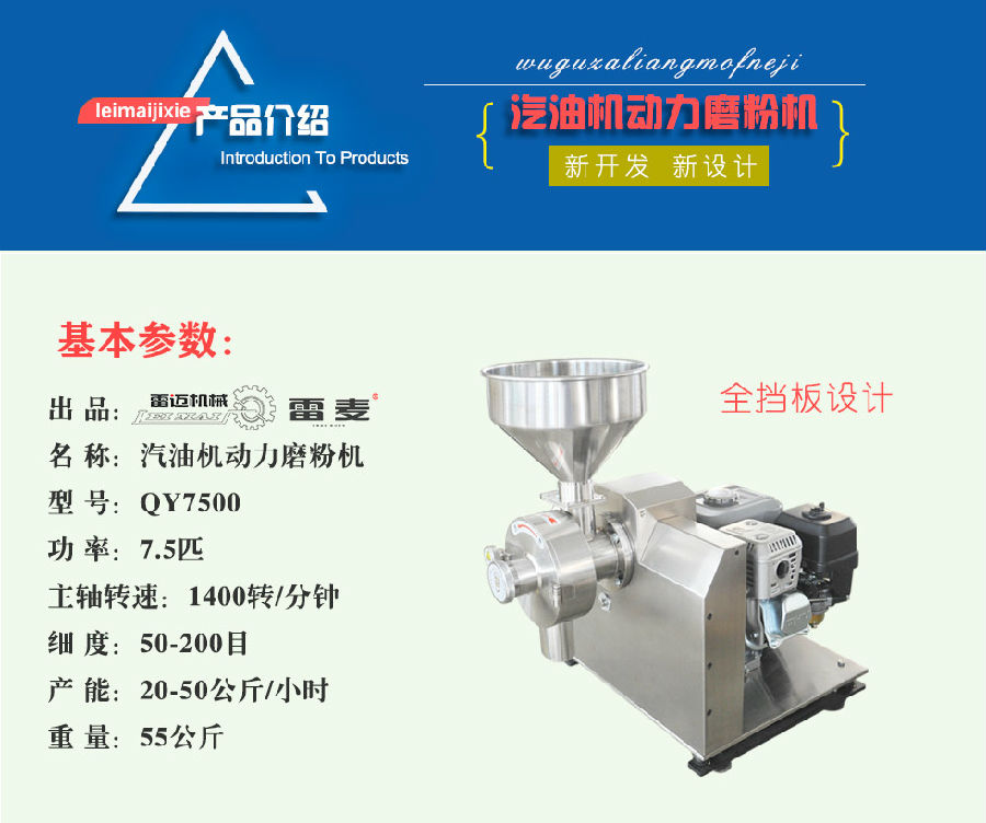 羞羞答答视频汽油磨粉机采用国内知名动力品牌汽油机(宗申汽油机),动力足、静音效果好。加厚不锈钢全挡板防护装置避免废气与粉末串味和粉末的飘动。双层底座8个减震垫装置使之分散震动力,工作时不跳动。电子打火加手启动更省时省力,大料斗装料。适用于超市、商场、店铺档口现场加工各种五谷杂粮,特别适用流动磨粉作业。